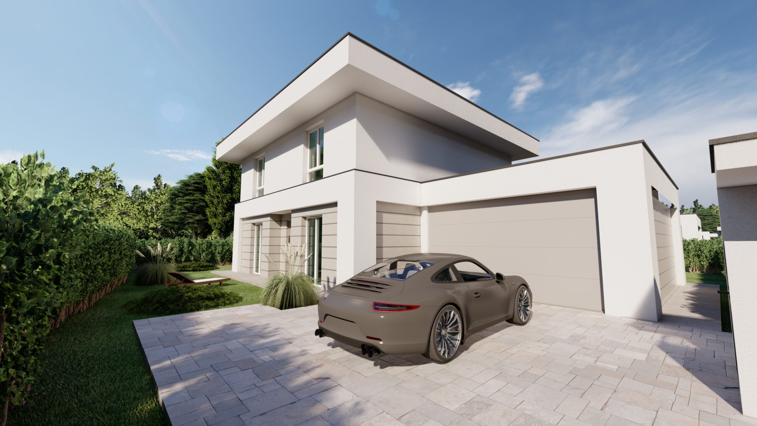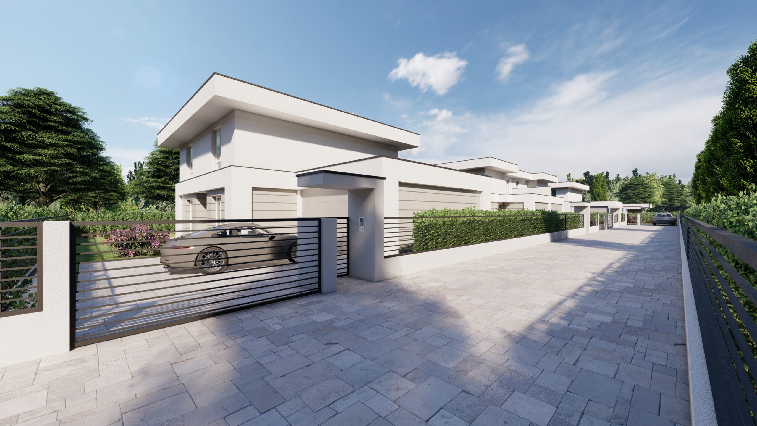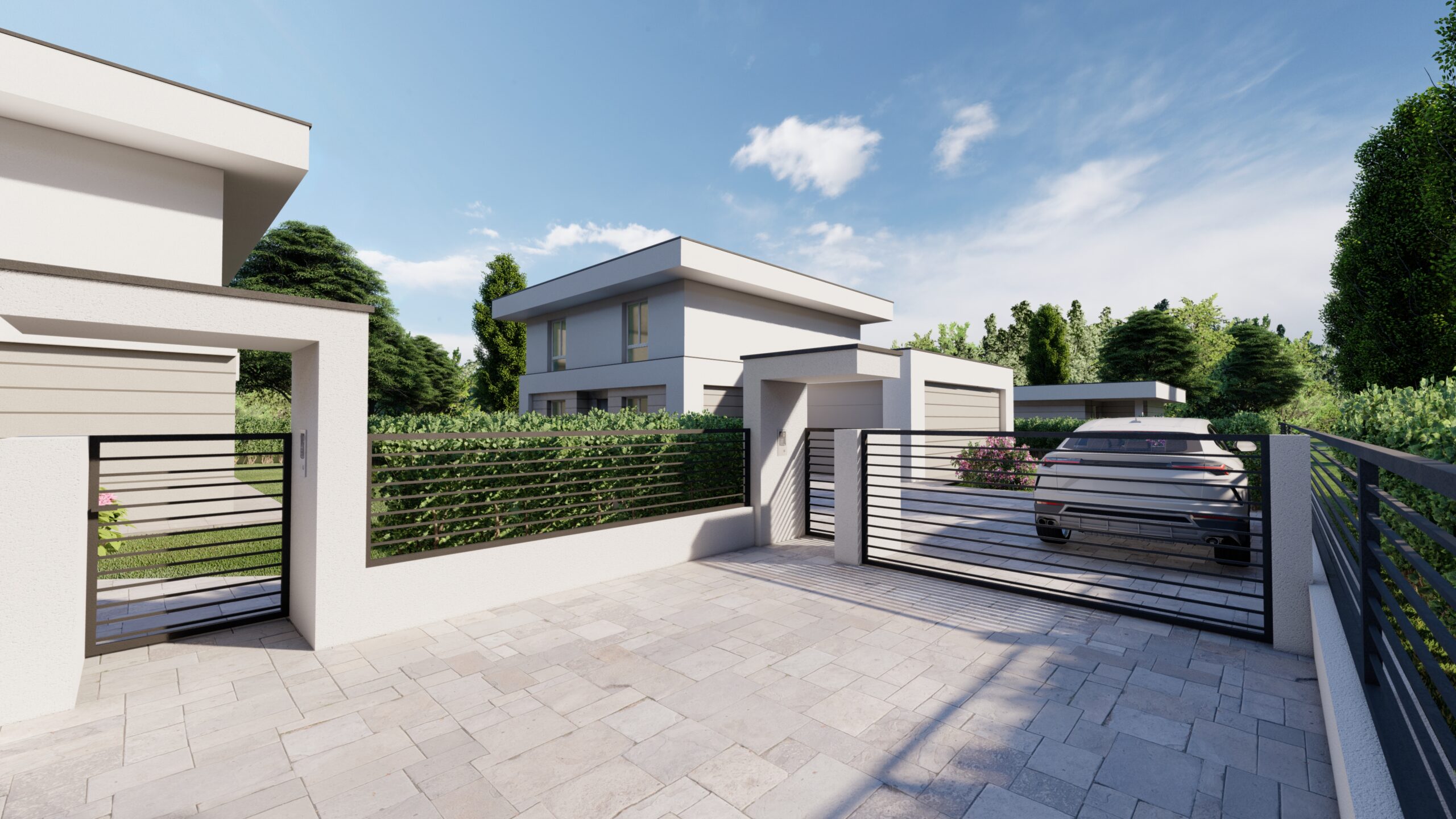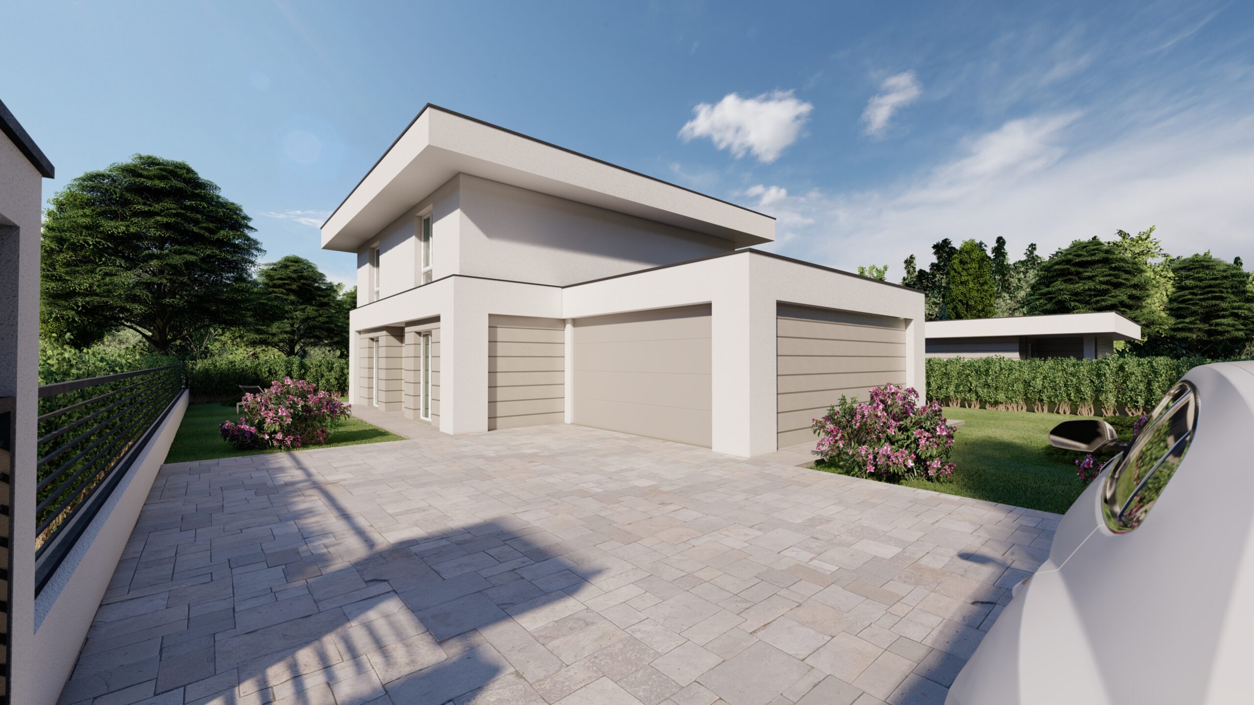Annesso al box doppio in larghezza parcheggio interno per due vetture.